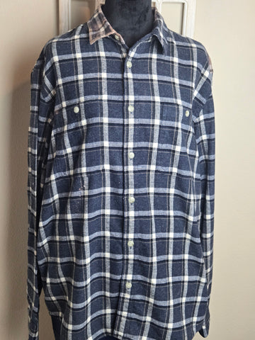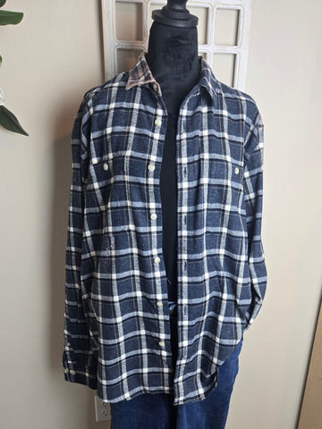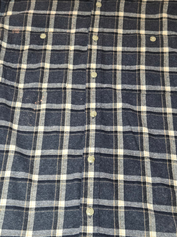 Blue Plaid Bleached Flannel. Size Large. Mama Bear.