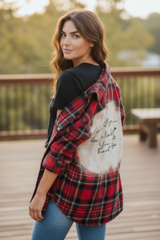 Effortlessly cool and completely one-of-a-kind — this upcycled flannel brings new life to a vintage classic. Each shirt is thrifted, hand-bleached for a soft, lived-in pattern, and finished with a custom screen print on the back. The result is a statement piece that blends casual comfort with artistic edge.
