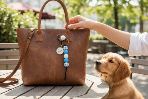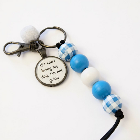 Add a pop of color and personality to your every day essentials with this handmade beaded keychain with a charm that reads "If I can't bring my dog, I'm not going". Each keychain we make is carefully handcrafted with high quality beads and sturdy hardware, making it both beautiful and durable. Additionally each one is a limited edition of one, therefore making it a one of a kind gift.