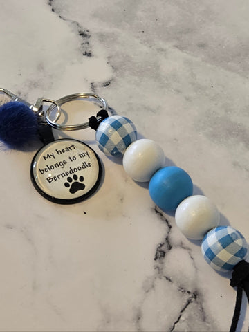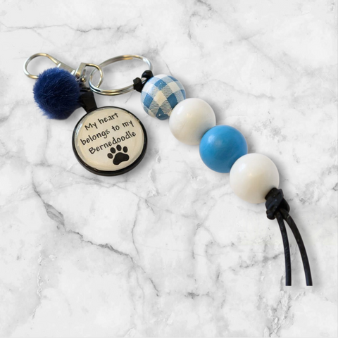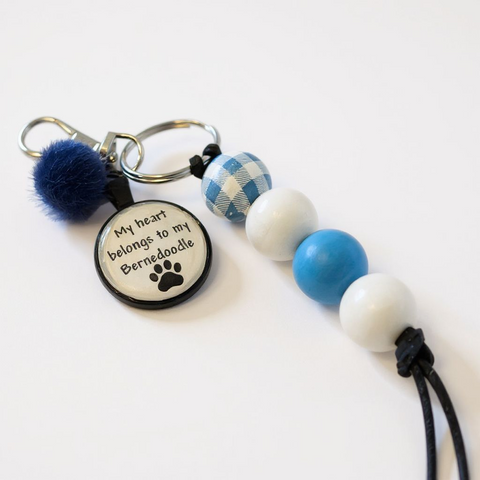 Add a pop of color and personality to your every day essentials with this handmade beaded keychain with a charm that reads "My heart belongs to my Bernedoodle". Each keychain I make is carefully handcrafted with high quality beads and sturdy hardware, making it both beautiful and durable. Additionally each one is a limited edition of one, therefore making it a one of a kind gift.
