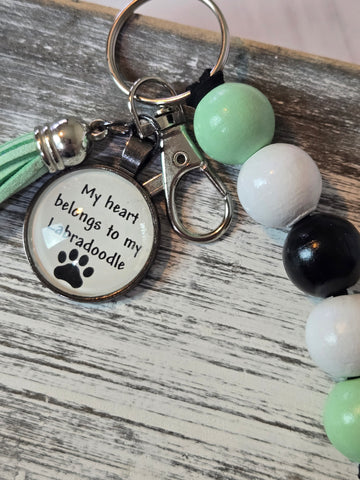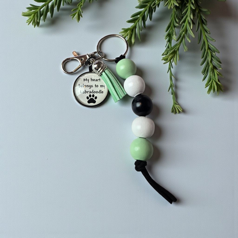 Add a pop of color and personality to your every day essentials with this handmade beaded keychain with a charm that reads "My heart belongs to my Labradoodle". Each keychain I make is carefully handcrafted with high quality beads and sturdy hardware, making it both beautiful and durable. Additionally each one is a limited edition of one, therefore making it a one of a kind gift.