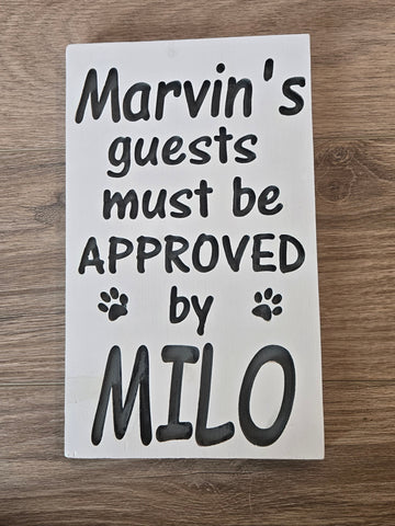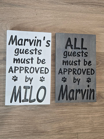 Personalize this sign for yourself or someone special on your guest list. Provide the pet's name (up to 7 letters) and choose your choice of colors. The pictures provide examples of signs created for customers in the past.